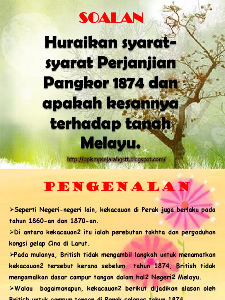 Perebutan Takhta Di Perak : Perbalahan dalam perebutan takhta sultan perak ini sebenarnya berlaku sebelum raja bendahara ismail diangkat menjadi sultan perak ke 25 lagi dalam tahun 1871.