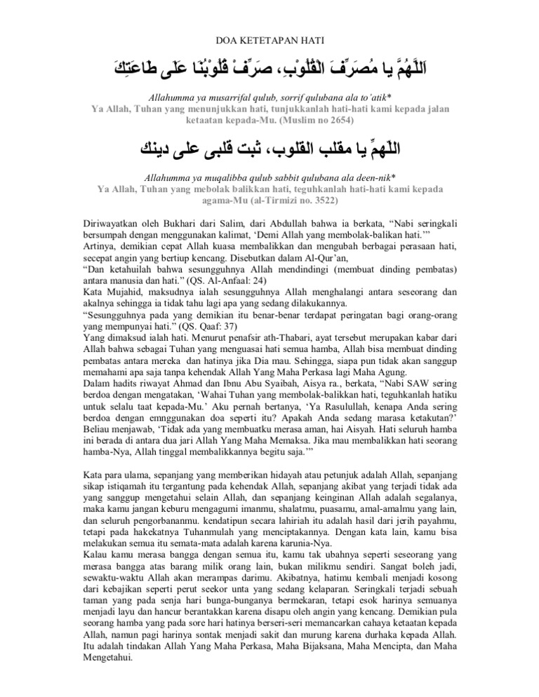 Ketetapan hati menjadi karakter khusus setiap hamba terbaik yang memperoleh petunjuk dan kasih sayang dari allah swt. Doa ini dibaca untuk memohon ketetapan hati, keteguhan iman dan petunjuk lafaz dalam huruf latin : Doa agar diringankan dari beban kehidupan. Hati sangat vital dalam kehidupan seseorang. Ketetapan hati untuk mengasihi tuhan, ketetapan hati untuk taat, dan ketetapan hati untuk hidup dalam kebenaran. اَللَّهُمَّ مُصَرِّفَ الْقُلُوْبِ, صَرِّفْ قُلُوْبَنَا عَلَى طَا عَتِك. Doa berlindung dari keburukan hati dan jiwa february 12, 2019 in doa dan dzikir. Silahkan kunjungi postingan doa mohon ketetapan hati dalam iman untuk membaca artikel selengkapnya dengan klik link di atas. Tentunya hati yang bertatahkan iman. Download lagu doa keteguhan hati (12.5mb) dan streaming kumpulan lagu doa keteguhan hati doa memohon keteguhan hati: Doa ketetapan hati yang sering dibaca. Klik pada gmbar untk lebih jelas. Doa ketegaran hati keteguhan hati ketetapan hati pendek singkat.