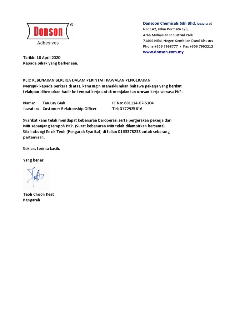 Related : Kebenaran Bekerja Semasa Pkp / Download Surat Pelepasan Bekerja Kebenaran Rentas Daerah Negeri Ketika Pkp Pkpb : Nombor lesen agensi kawal selia 6..